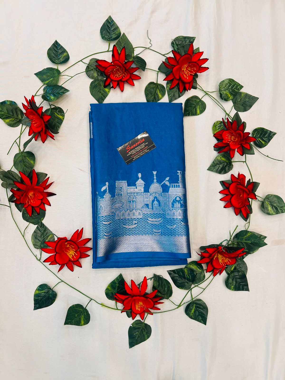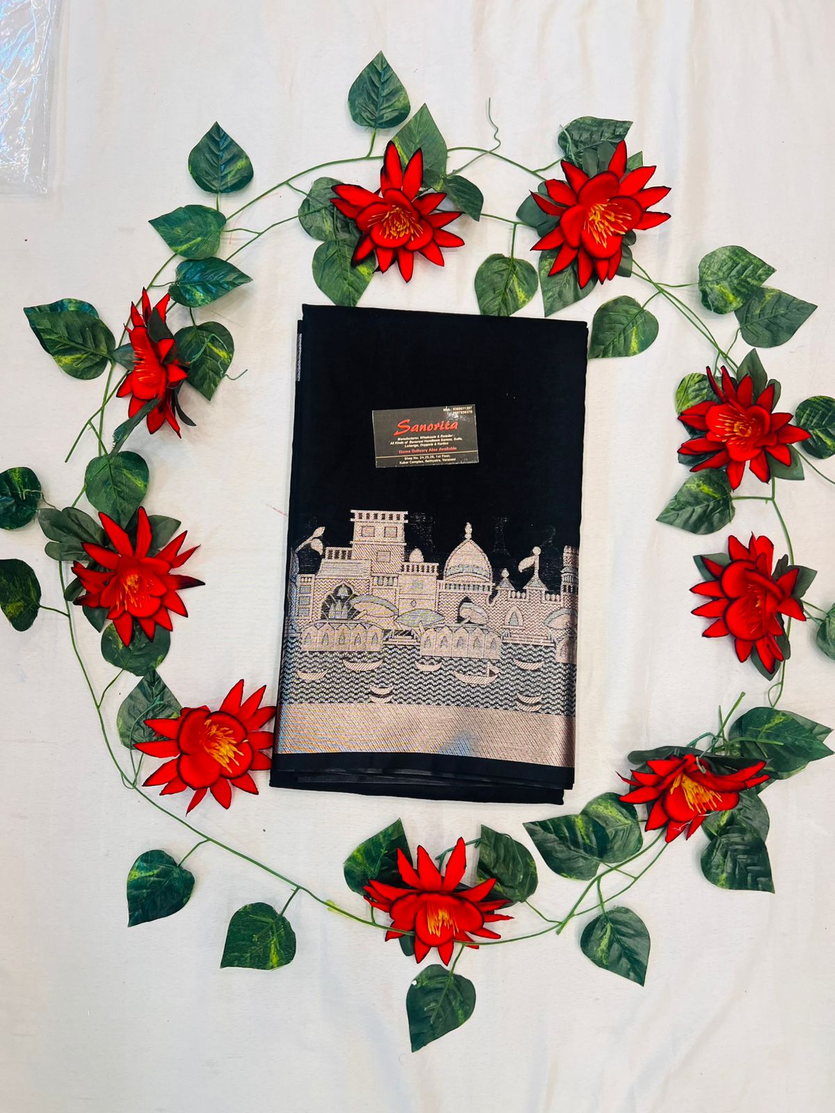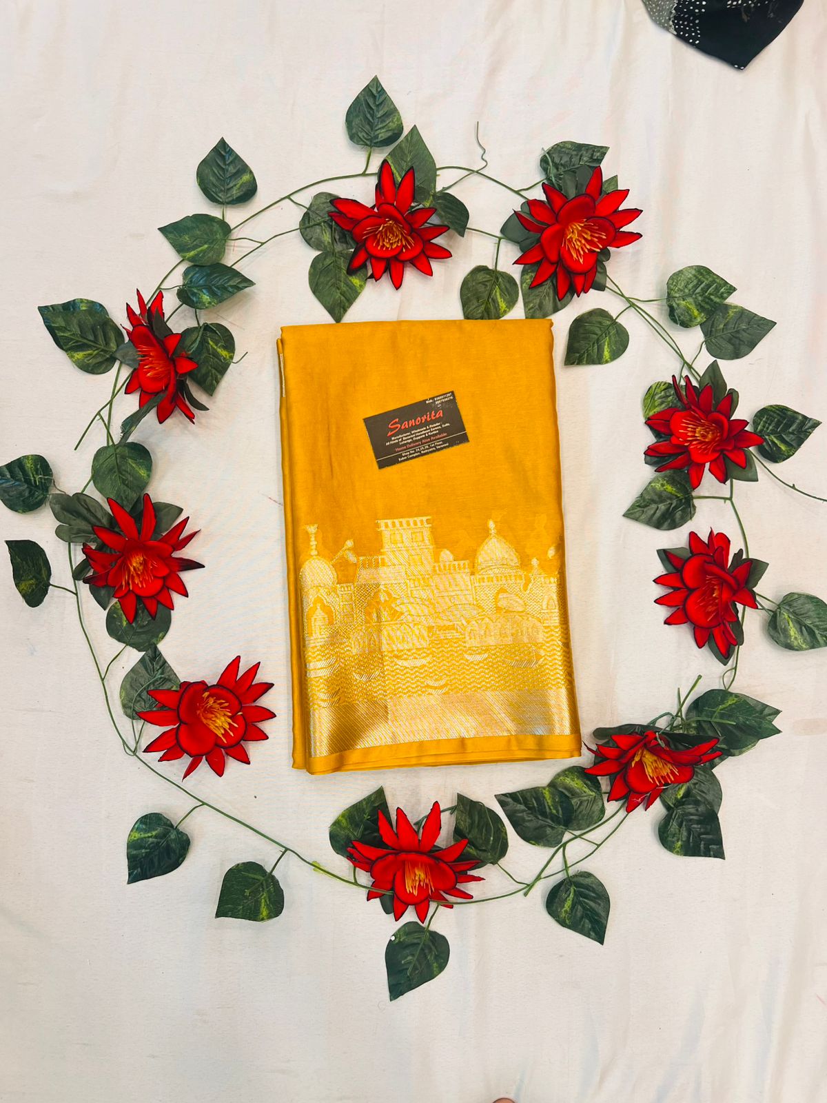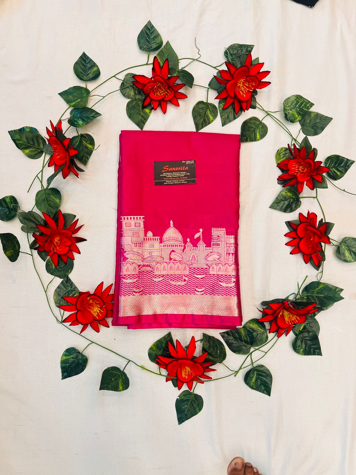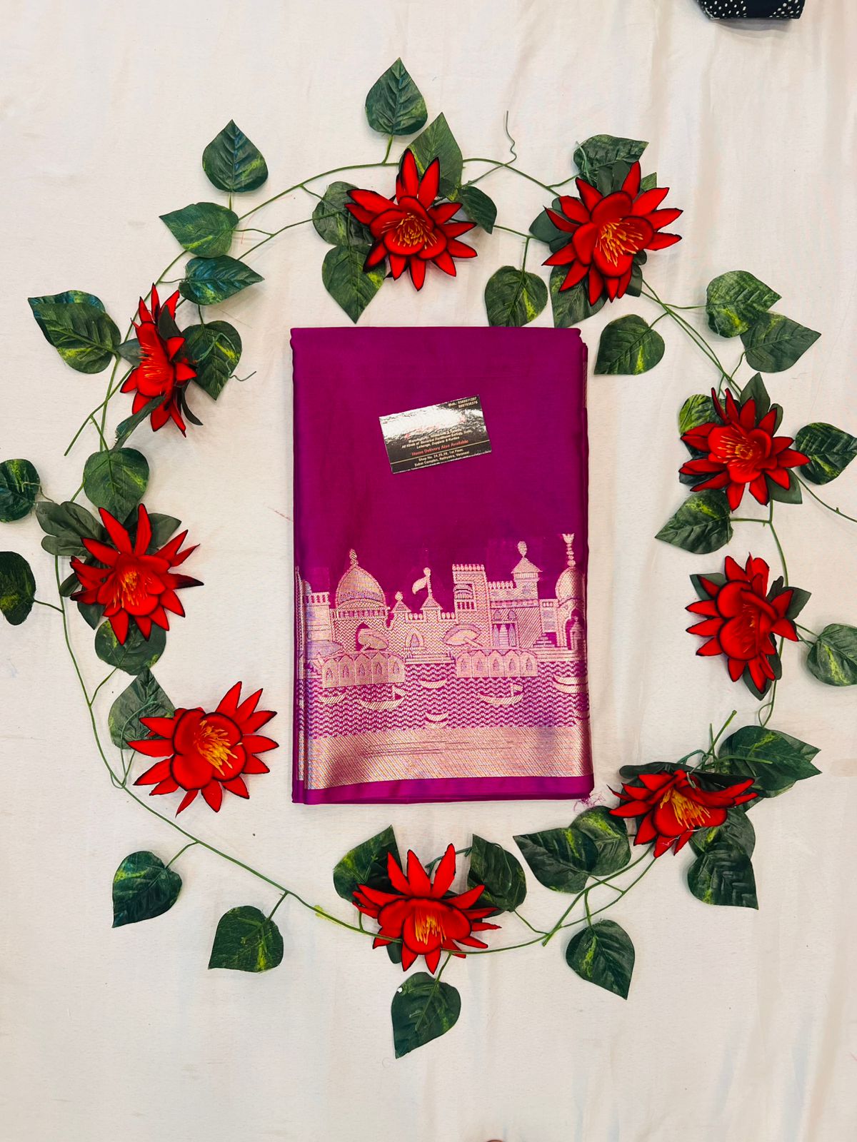 Banarasi ghat kalyug sarees georgette By katan brocket Blouse up and down border sona rupa zari.