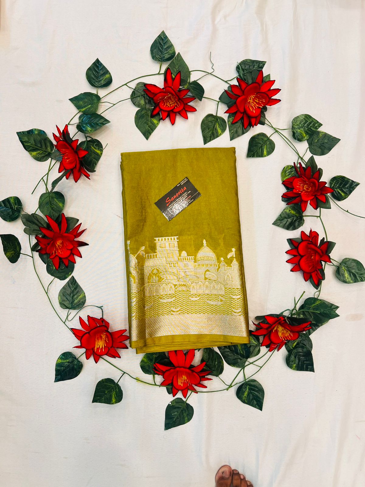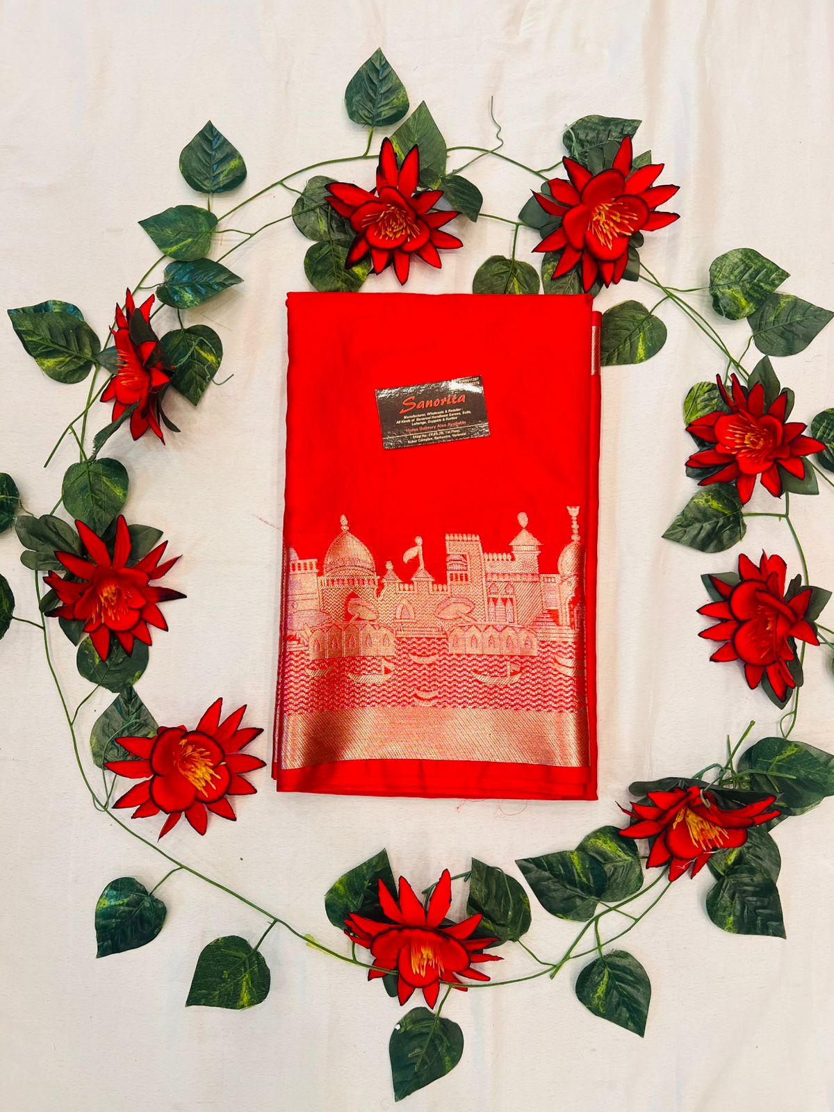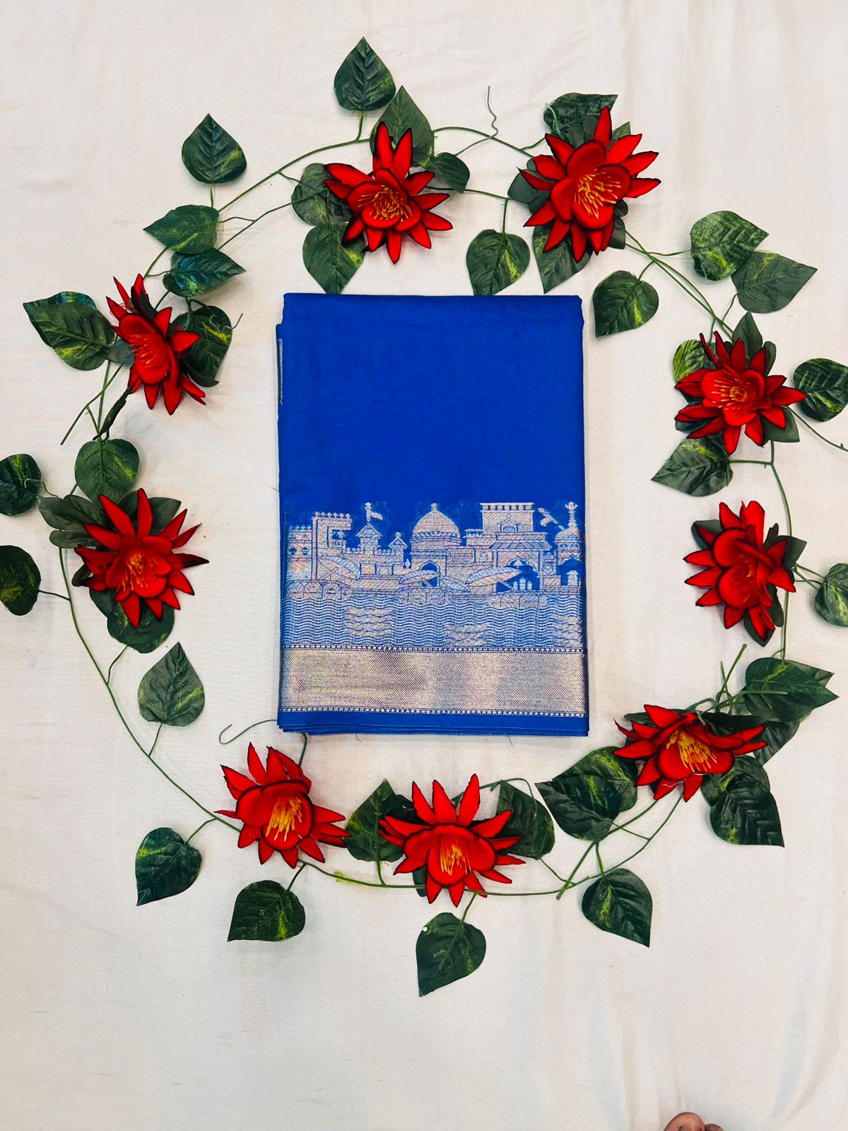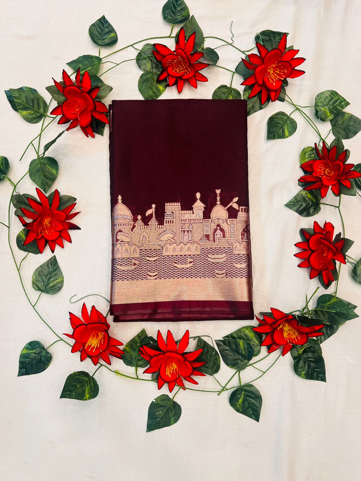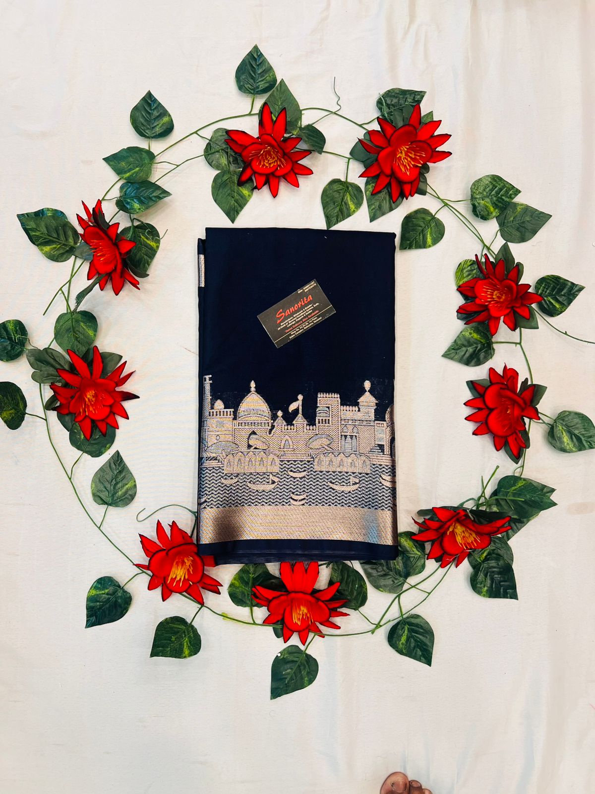 Banarasi ghat kalyug sarees georgette By katan brocket Blouse up and down border sona rupa zari.