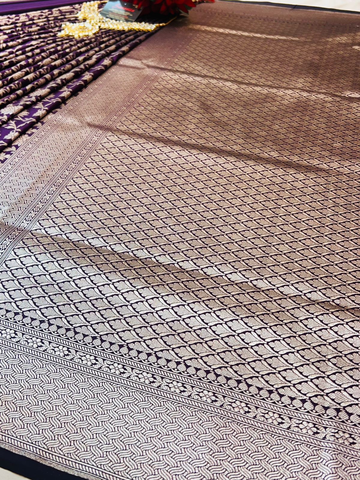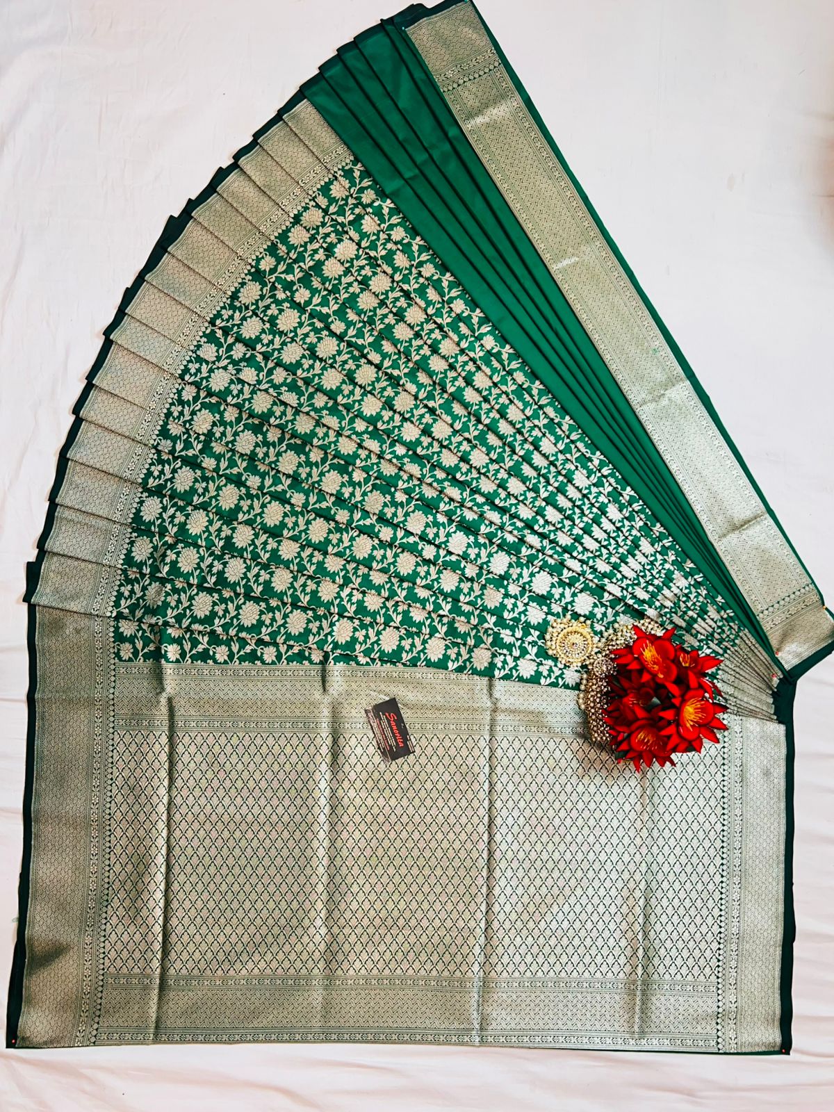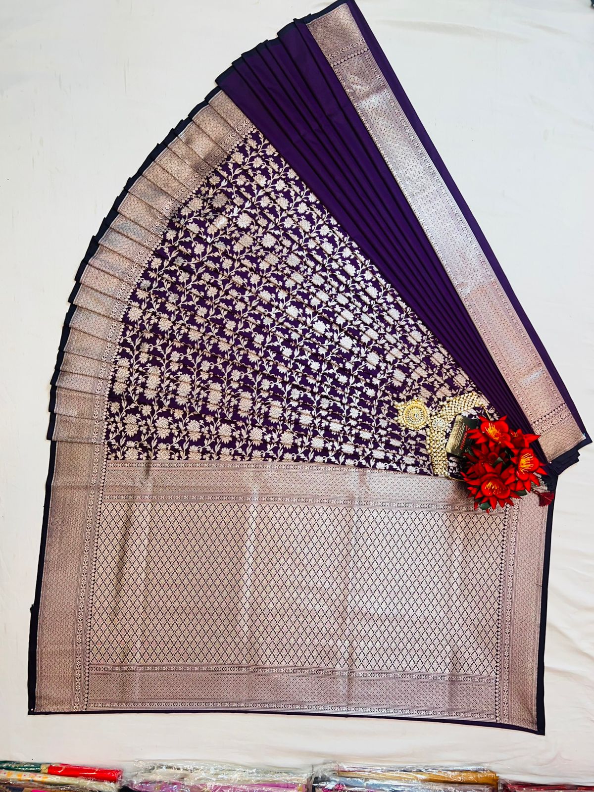 Banarasi semi katan jaal sarees water zari Rich Pallu plane blouse with border