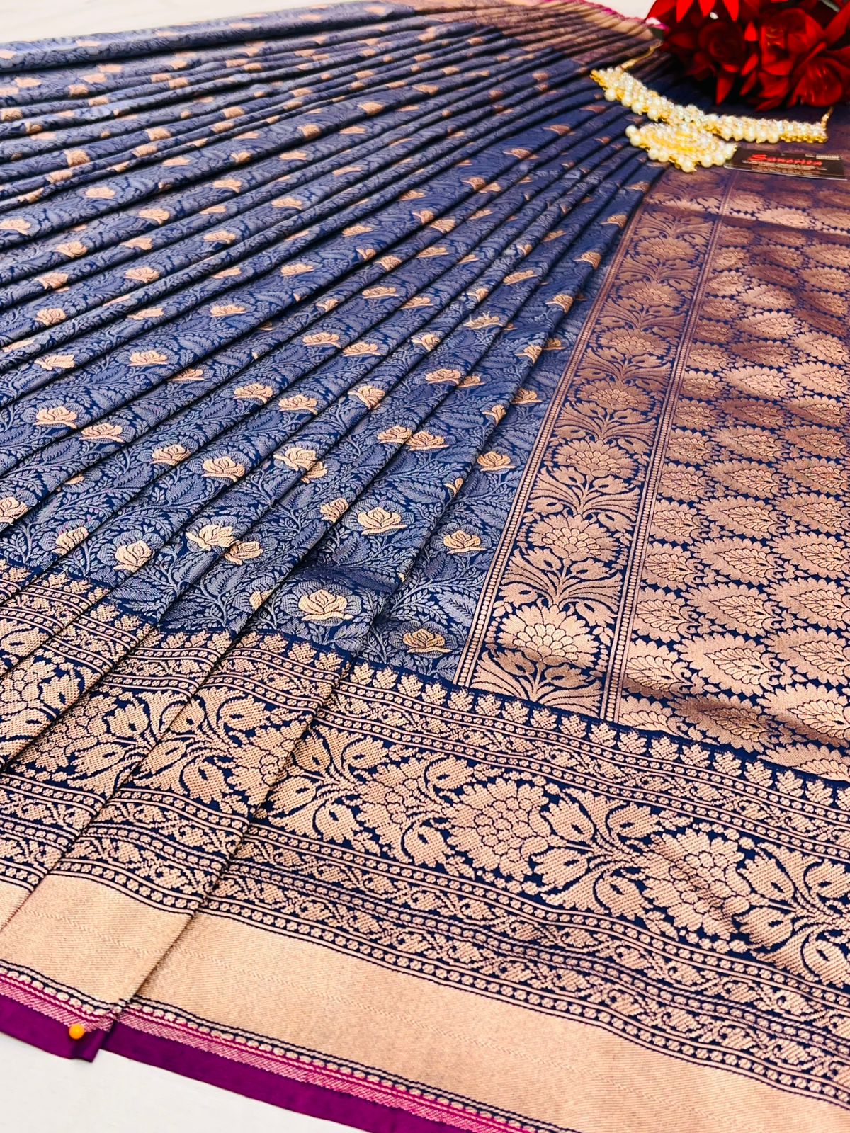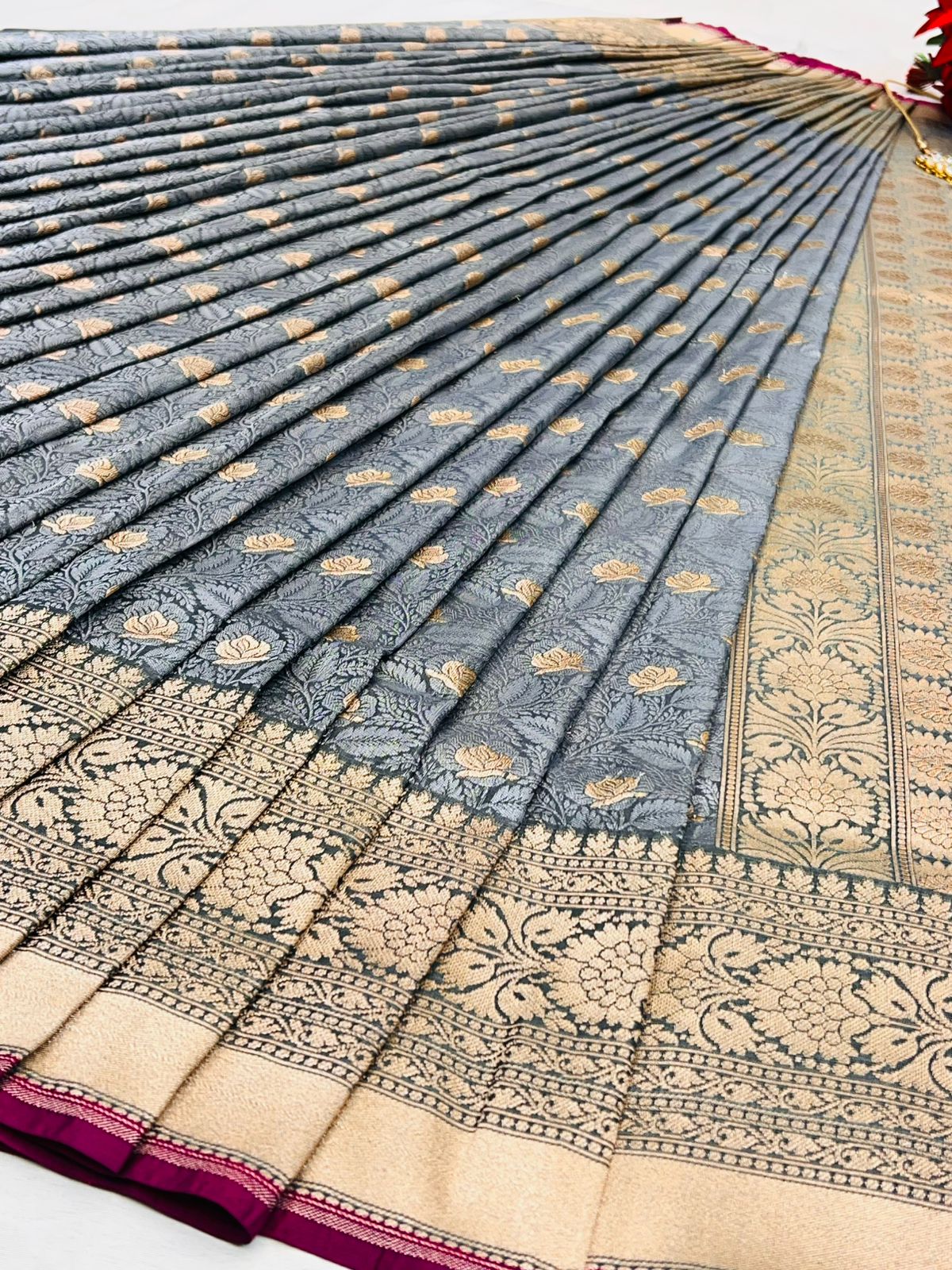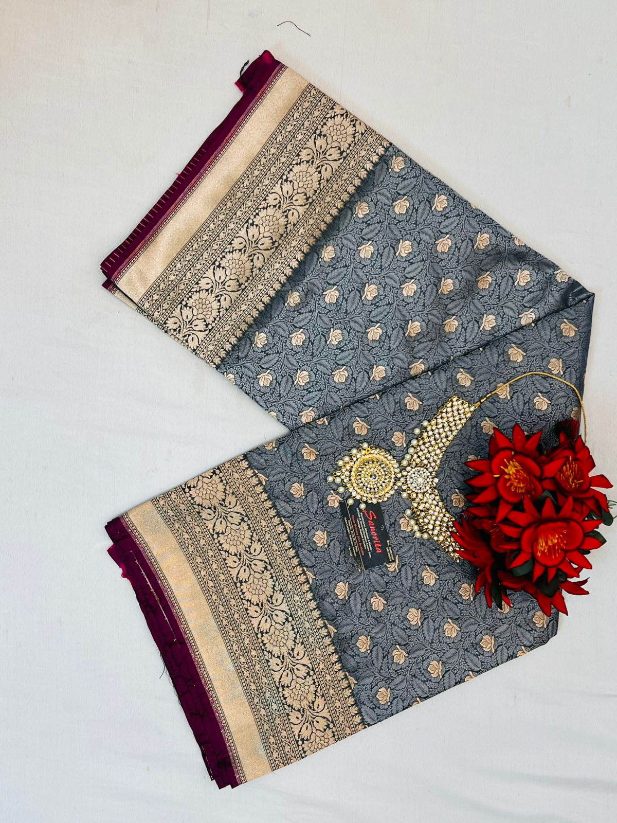 Banarasi Semi Katan Silk Sarees are a blend of traditional elegance and modern comfort. Made with fine semi-katan silk threads, these sarees showcase the luxurious charm of pure Banarasi weaving while being lighter and easier to drape. Known for their soft texture and graceful fall, they are adorned with intricate zari work, meenakari motifs, floral patterns, and traditional Banarasi designs inspired by Mughal artistry.